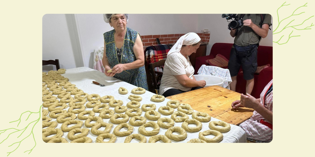 Per tradurre queste parole in immagine dobbiamo guardare alla dedizione delle signore come Franca e Pasqualina mentre preparano e infornano i taralli.
